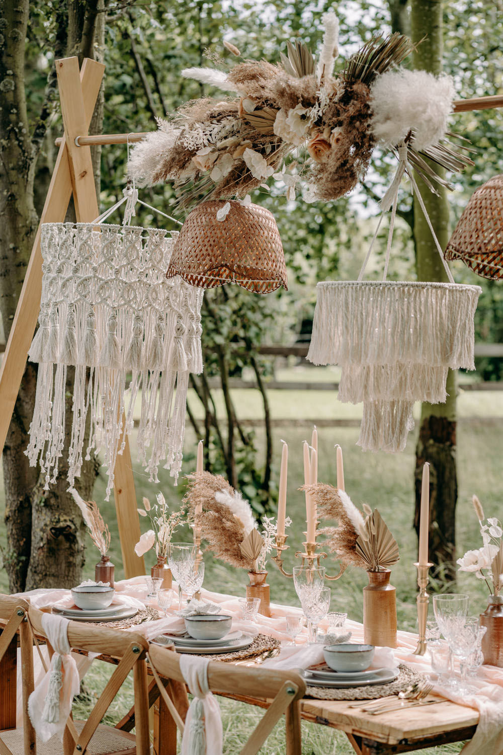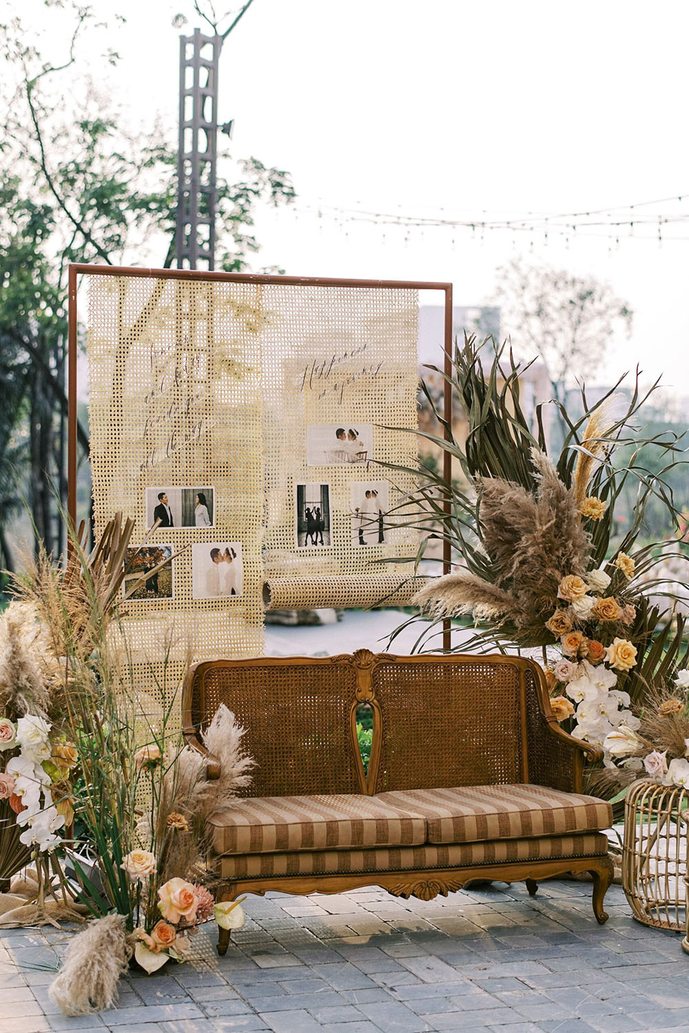Phong cách trang trí tiệc cưới Bohemian, với tinh thần tự do và phóng khoáng, tiếp tục là lựa chọn yêu thích của nhiều cặp đôi. Sử dụng các tông màu ấm, chất liệu tự nhiên và đồ trang trí thủ công, phong cách này tạo nên một không gian mộc mạc, lãng mạn nhưng vẫn tinh tế và hài hòa, phản ánh cá tính độc đáo của đôi uyên ương.