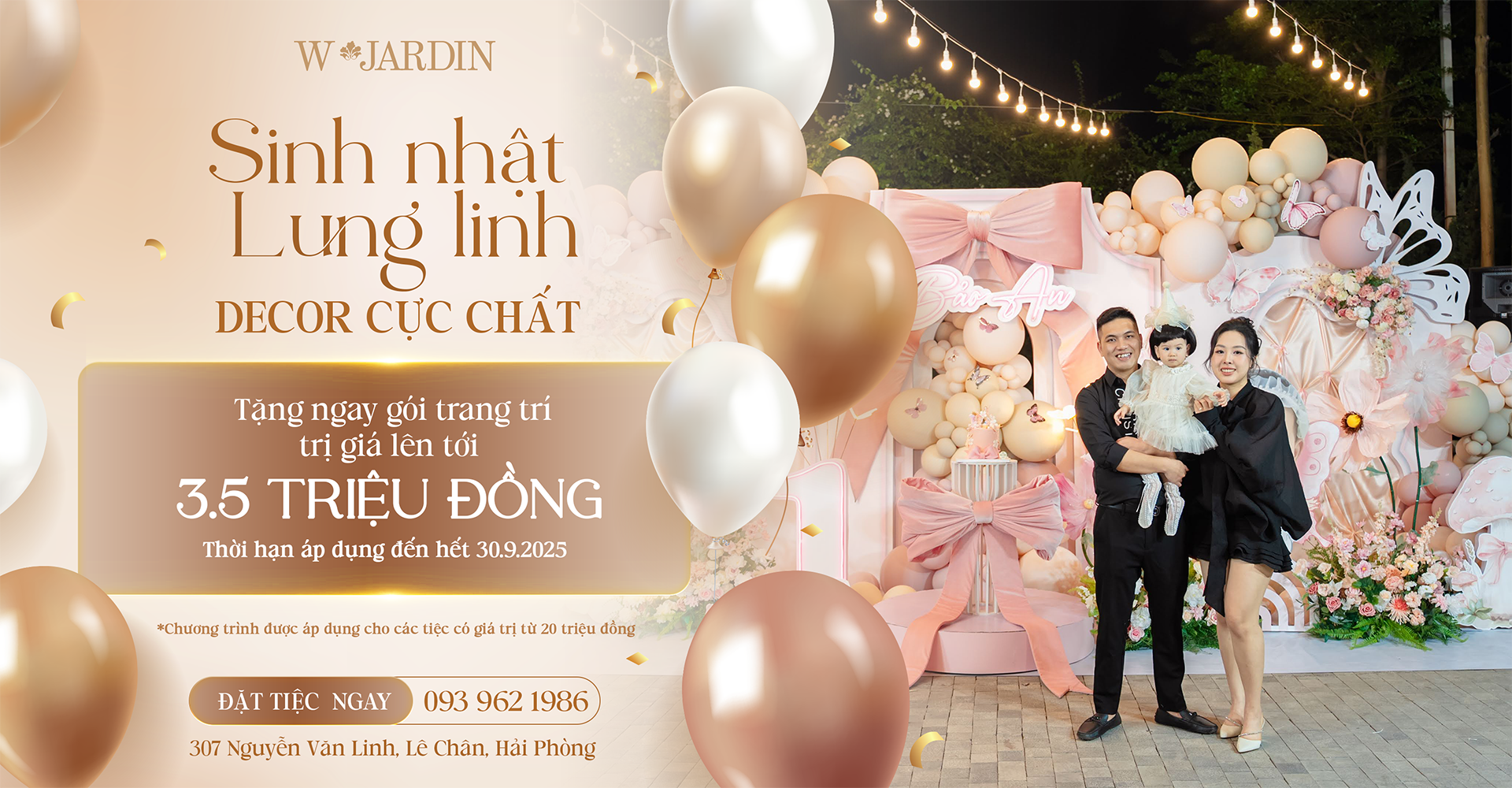 Hãy để W.Jardin đồng hành cùng bạn trong những dấu mốc quan trọng của gia đình, từ sinh nhật đến thôi nôi, với dịch vụ chỉn chu và không gian lung linh.